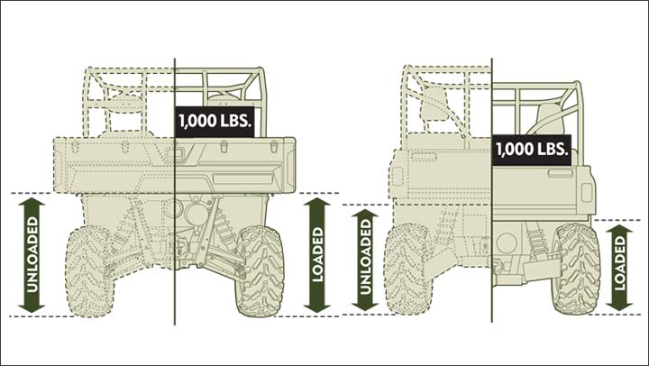 Kada okoristite RANGER HD sa teretom u tovarnom prostoru od 454 kg., Nivomat zadnji amortizeri automatski reaguju kako bi tovarni prostor što više približili visini koju ima  bez optećenja. Ovo omogućava maksimalni hod amortizera i klirens i pri upotrebi u teškim radnim uslovima.