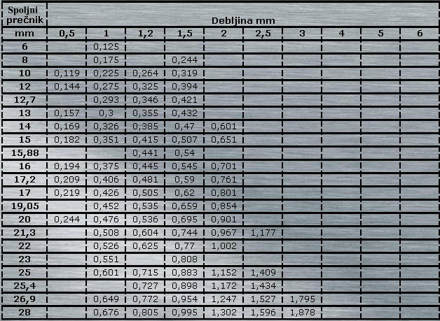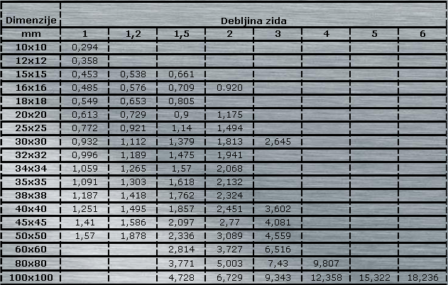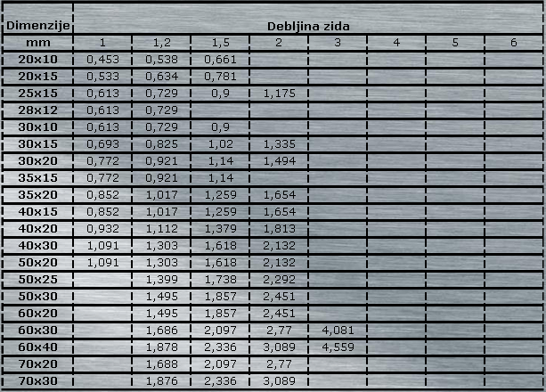 - Dimenzije i teoretske težine u kg/m